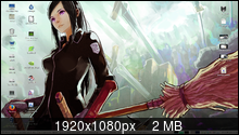 Arch Linux, KDE, фон рисован своими руками (на нем руна Райдо, я рисовал еще с рунами Эйваз, Перт и Манназ, нравятся мне скандинавские руны). Есть выезжающая слева панелька.