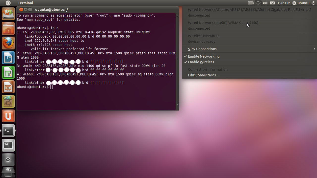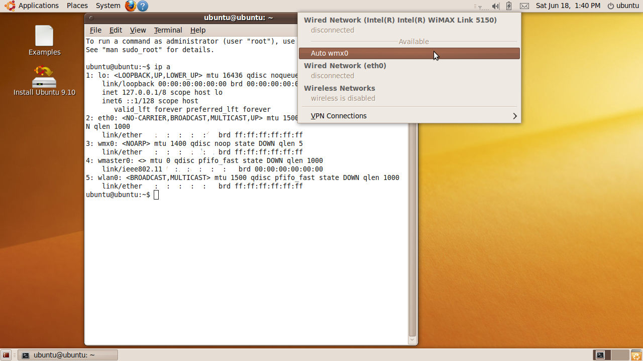 3: wmx0: <NO-CARRIER,NOARP,UP> mtu 1400 qdisc pfifo_fast state DOWN qlen 20