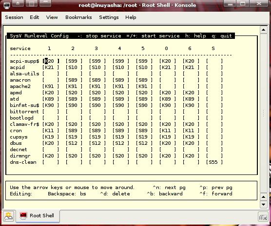 Мне нужна консольная утилита для управления службами, ksysv это графическая утилита, она невсегда удобна т.к. приходится подключатся удалённо по ssh, а с запуском графики по ssh я заморачиваться не хочу т.к. трафик ограничен, вот и хочу поинтересоваться есть ли что-то похожее на ntsysv.